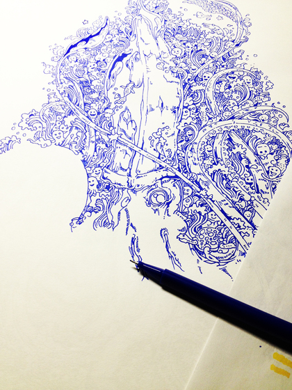 针管笔插画《阿瓦隆》