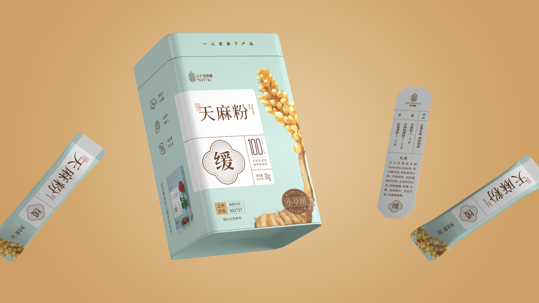 一心堂云天麻系列三七粉&天麻粉包装设计
