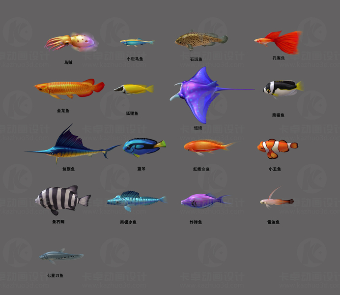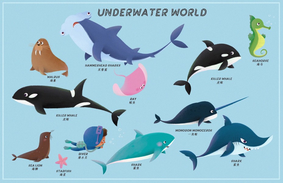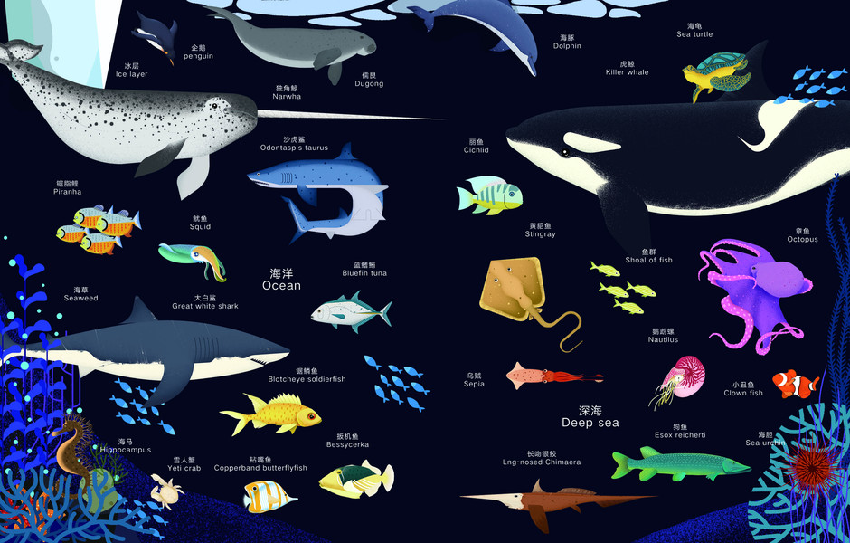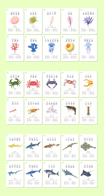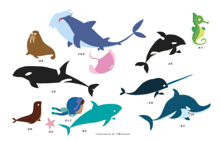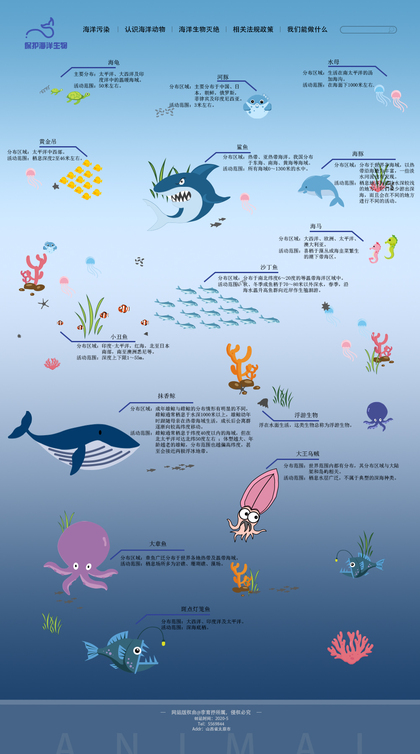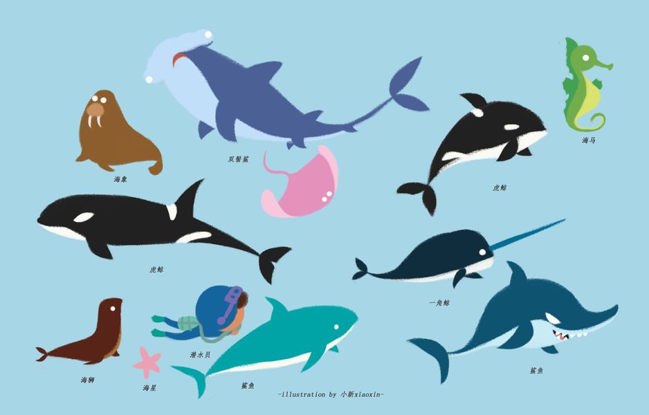 海洋动物知识卡片拟物风格矢量插画科普教育