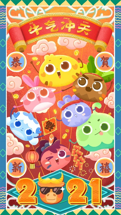 【兜兜不空】红包封面插画设计-绿头怪贺新年