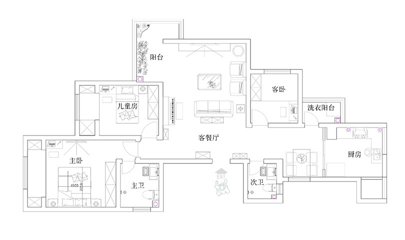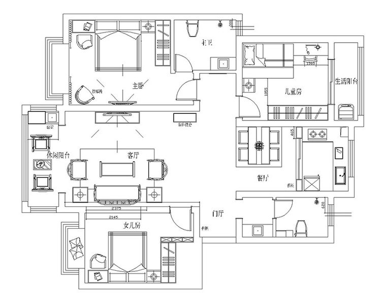 阳光怡景花园装修-130平三室-三代5人口简约有特点就好