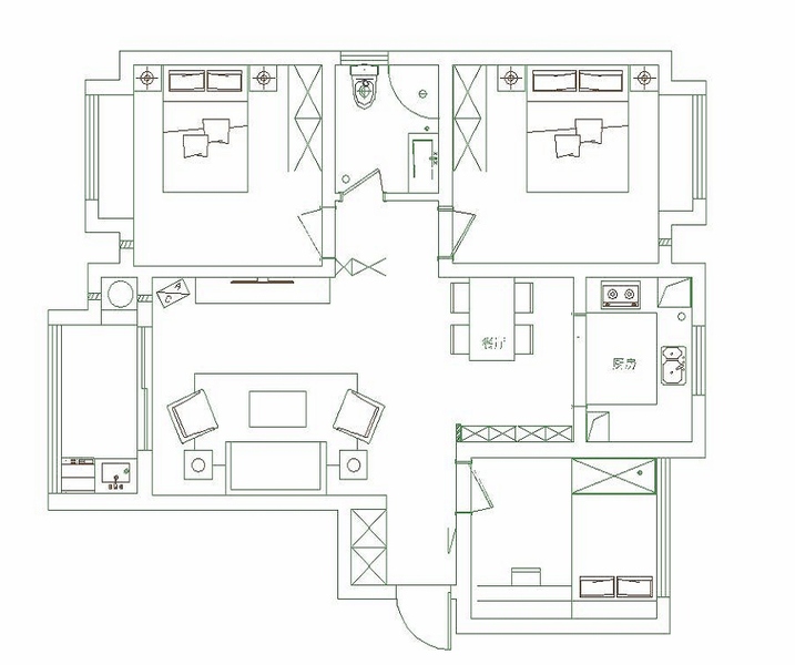 天伦锦城三室两厅样板间装修设计效果图