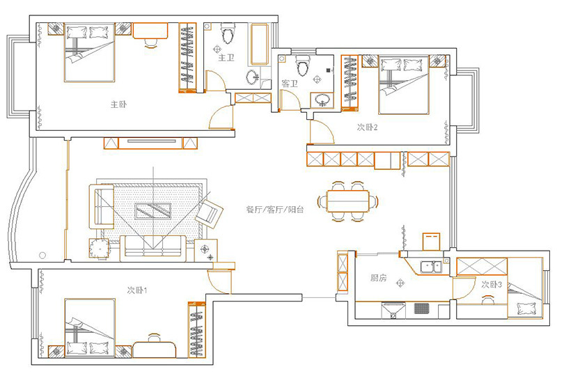 九龙城龙腾西城116四室两厅现代简约风格装修
