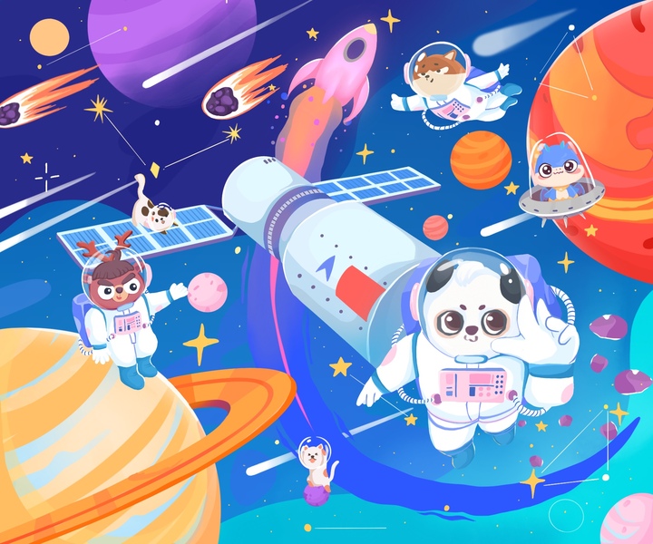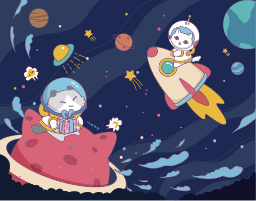 “星球、宇宙、银河、独角兽”——儿童插画