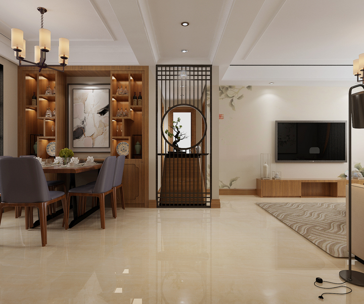重庆新中式风格装修设计效果图-瑞安翠湖天地