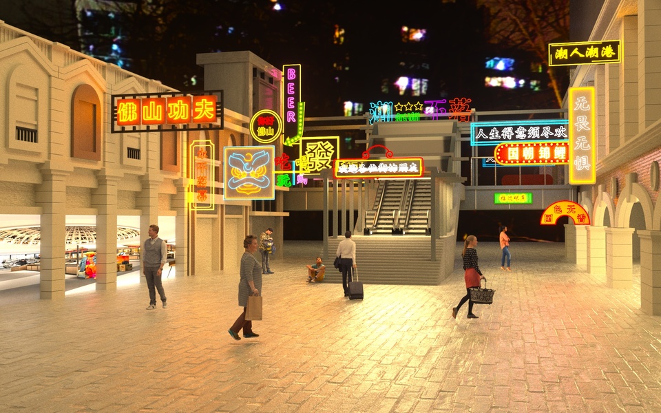 园区凉亭、户外宣传栏、文化墙等3D设计效果图两版方案