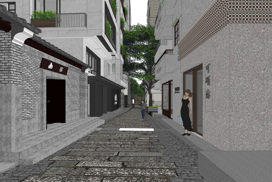 南头古城中山南街景观SU模型下载