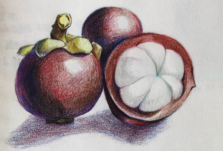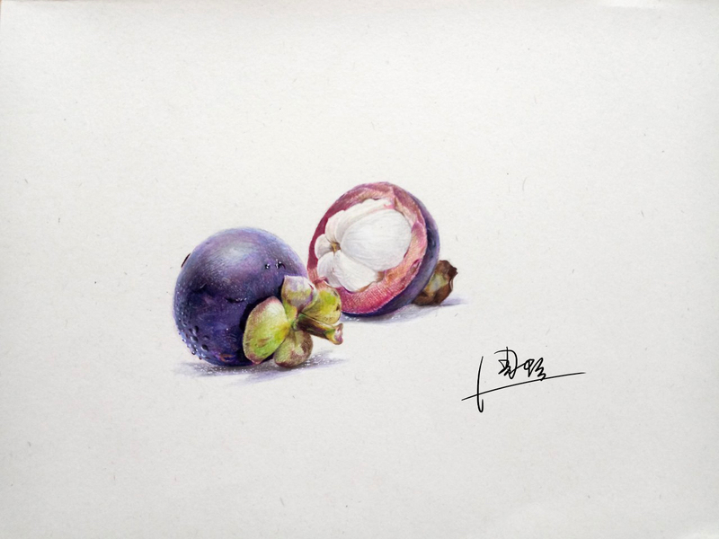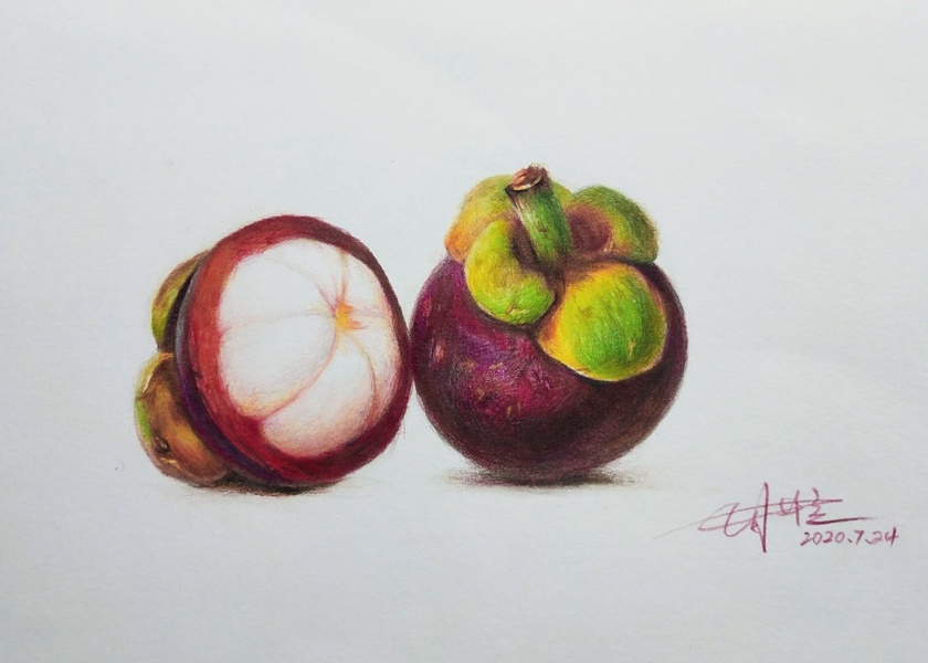 原创作品:纸上彩铅绘画——山竹彩铅绘制作品