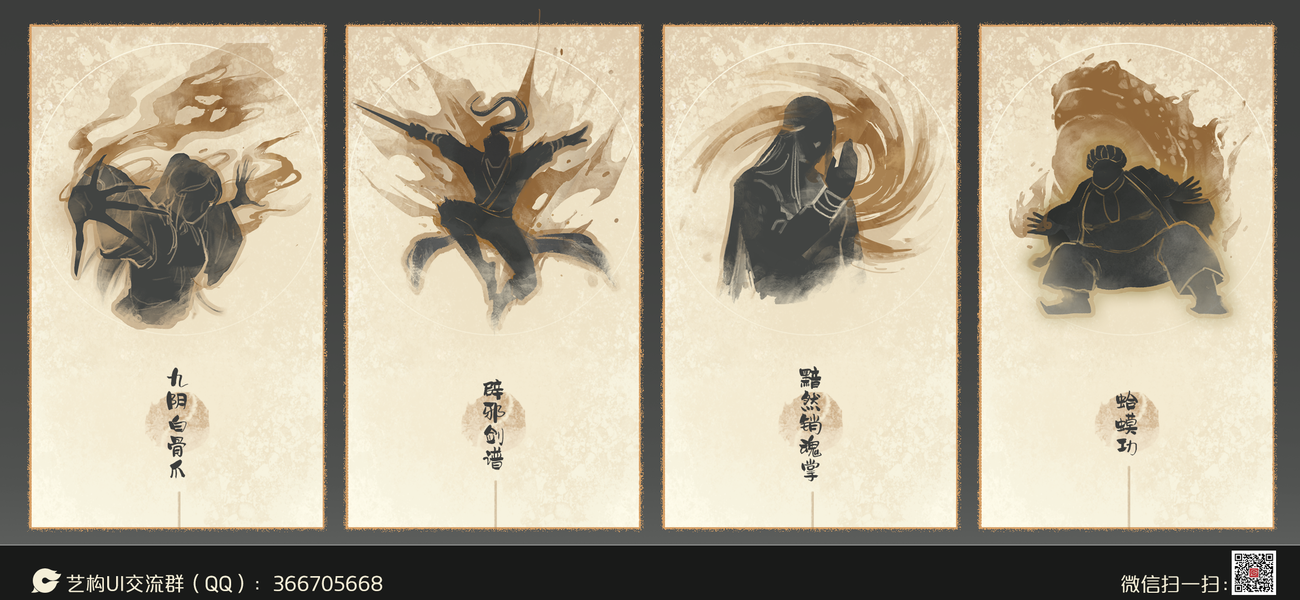 一组水墨武侠风神功招式牌面 | 艺构网络