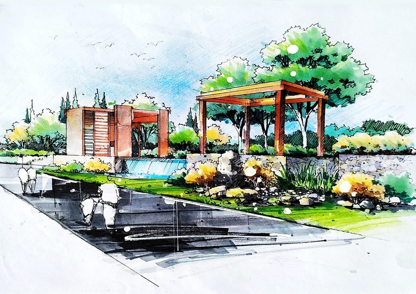 OCT华侨城十号院庭院景观手绘临摹作品杭州手绘培训