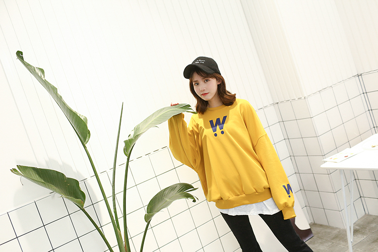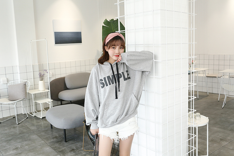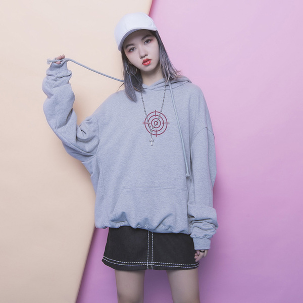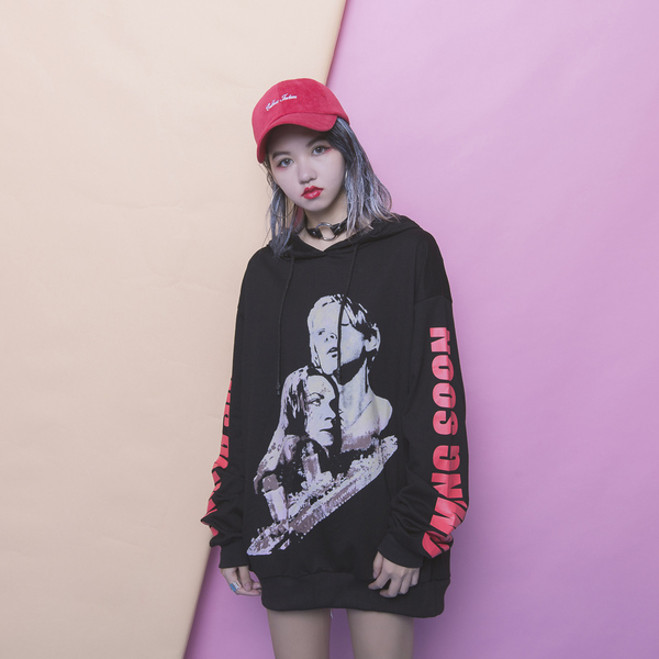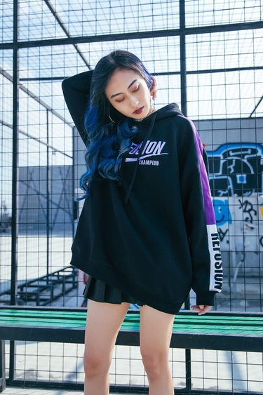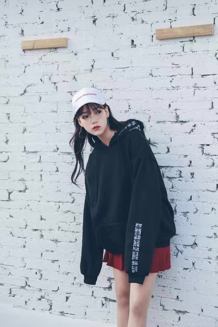 港风小清新英文刺绣拼接oversize 嘻哈连帽加绒卫衣