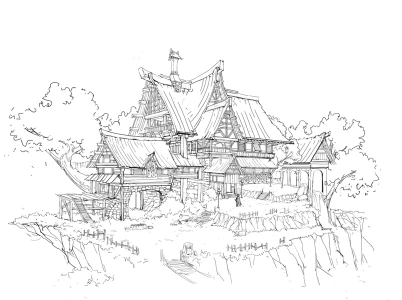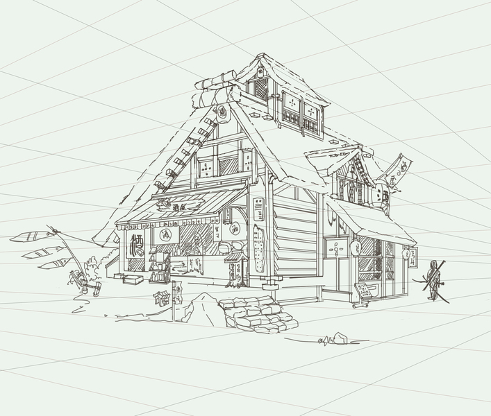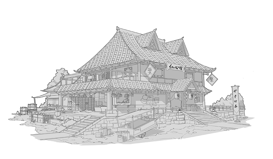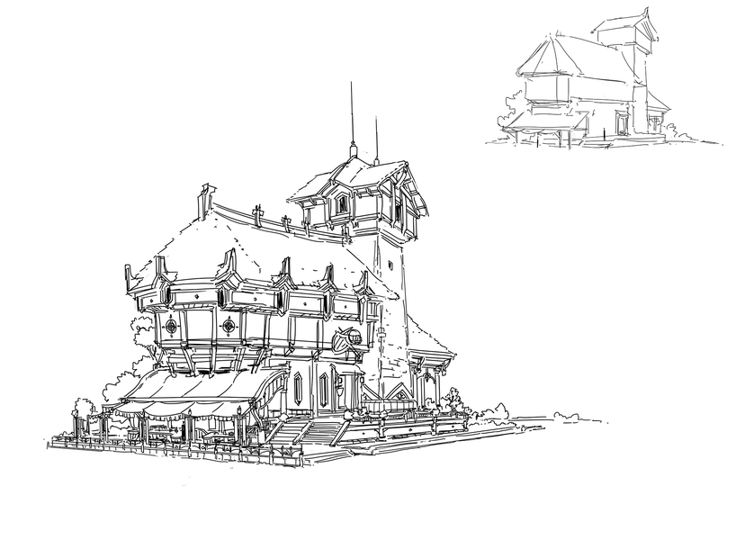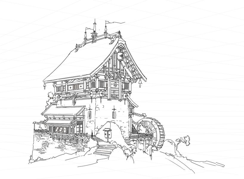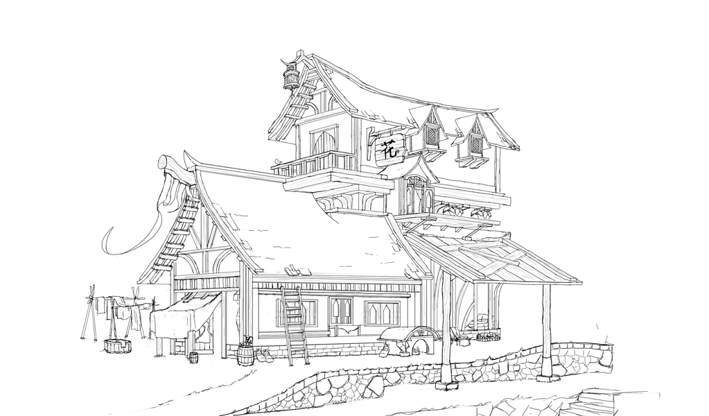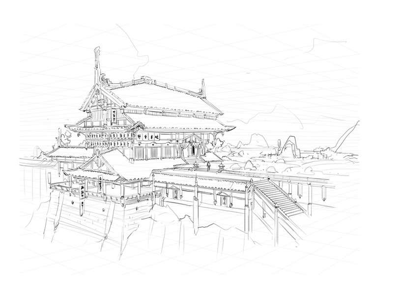 艺数绘讲师洛克猴(杜震)中国风建筑课堂范画