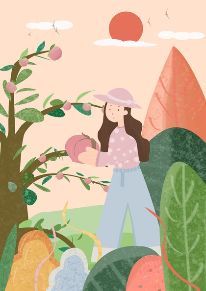 摘桃的小女孩