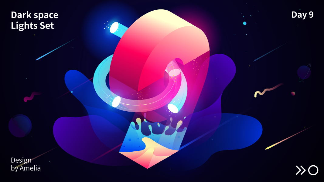 暗境溢彩渐变数字插画 isometric illustrations