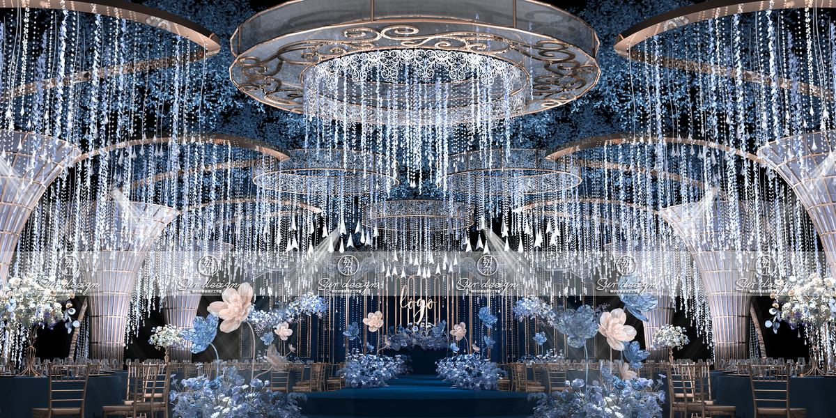 SurDesign蓝色系婚礼宴会设计3D效果图
