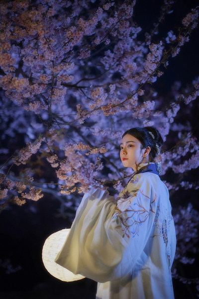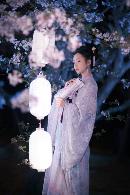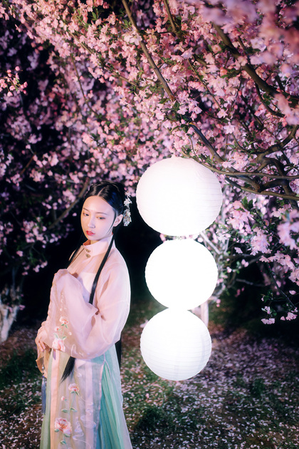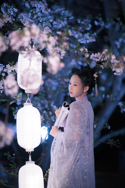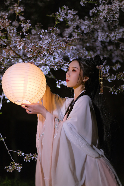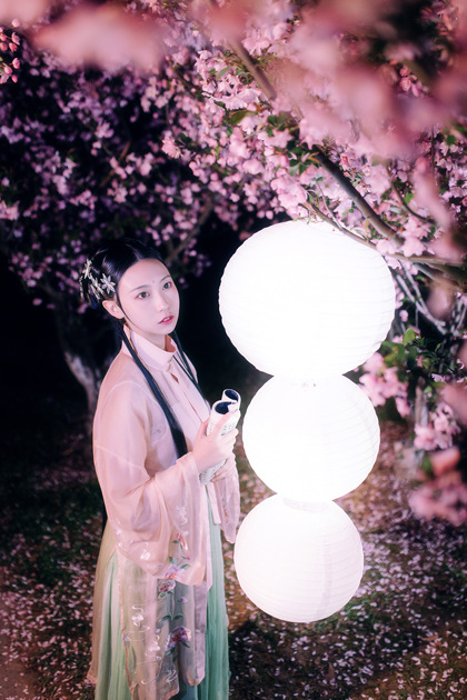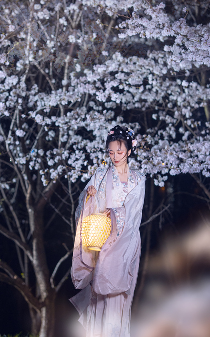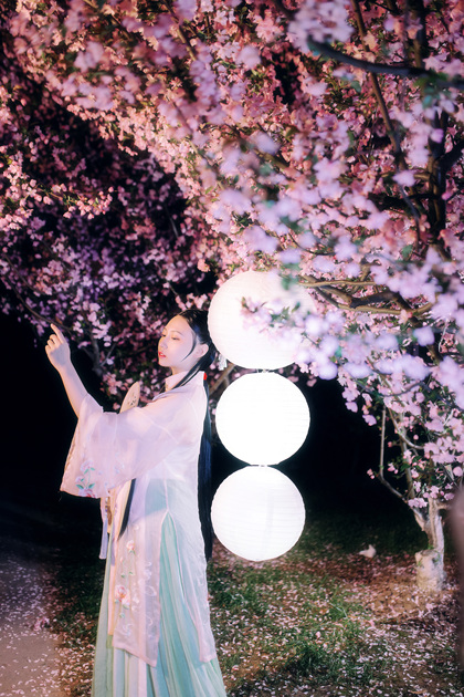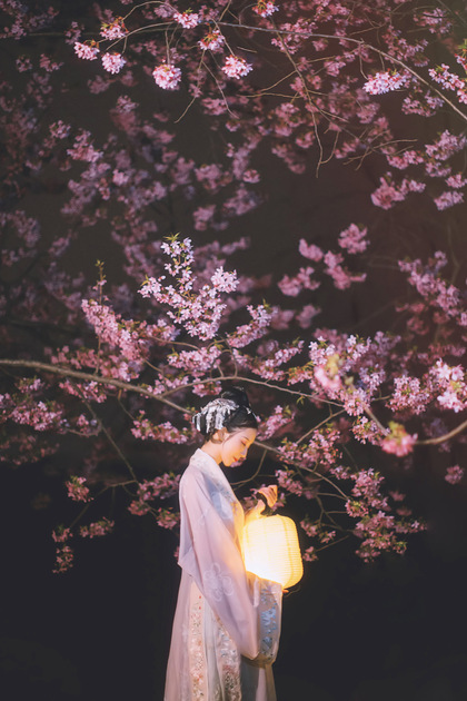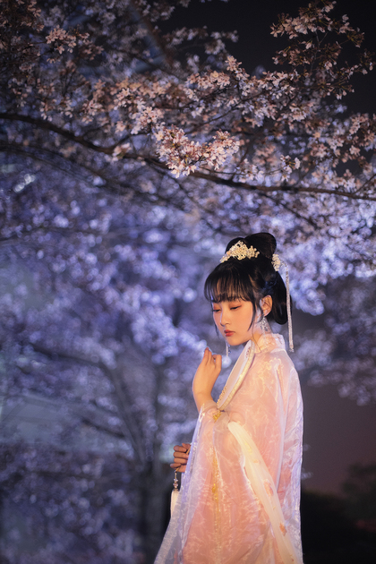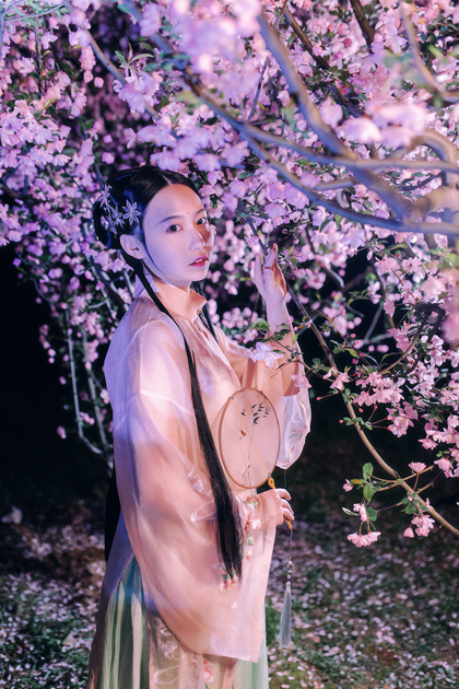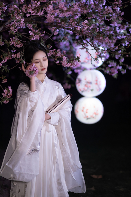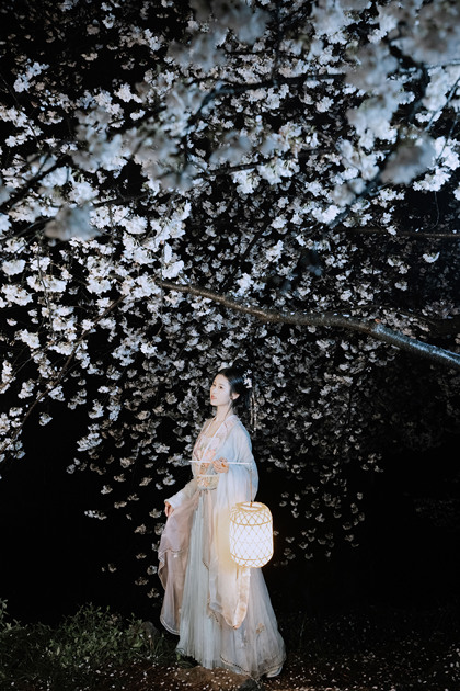 客片合集|夜景樱花粉樱+白樱花汉服古风少女写真