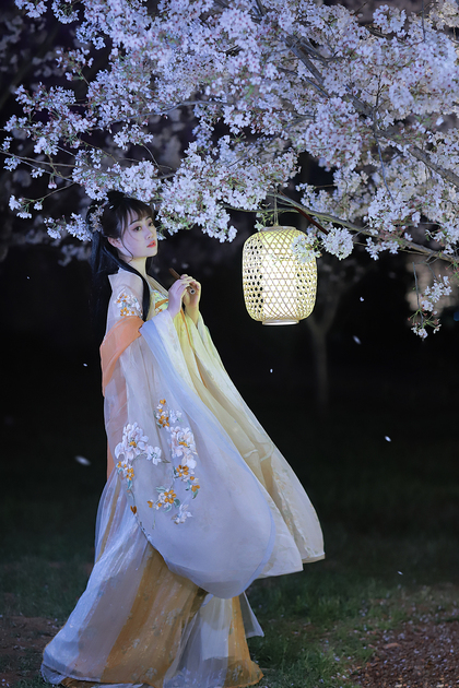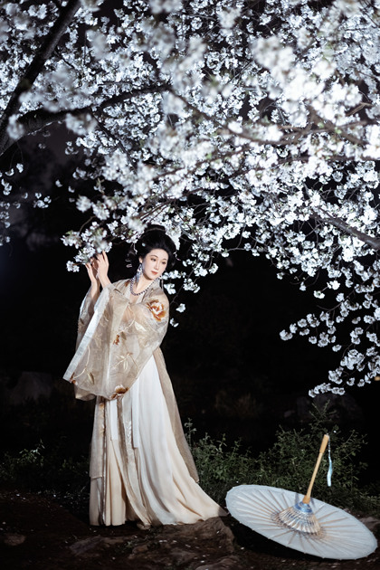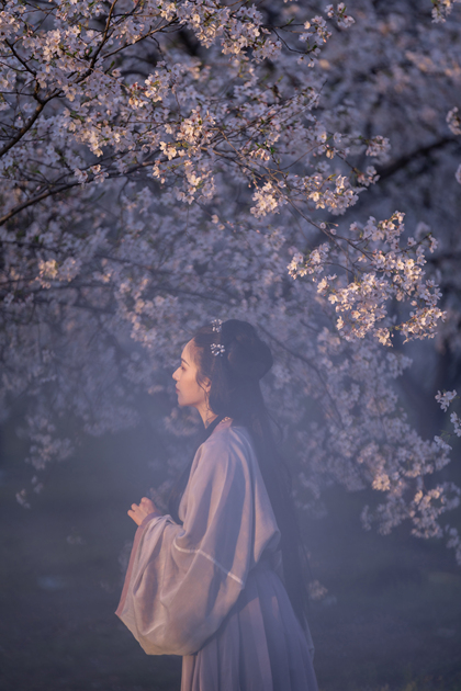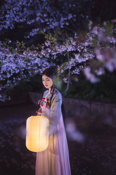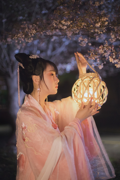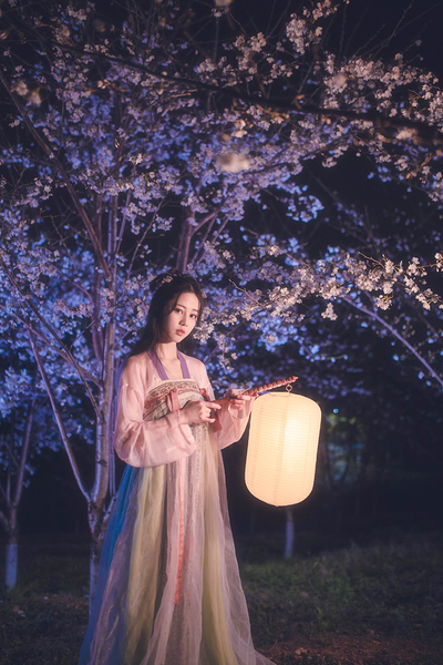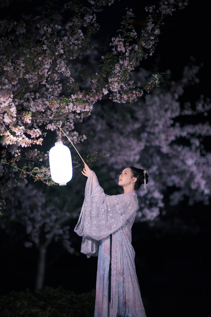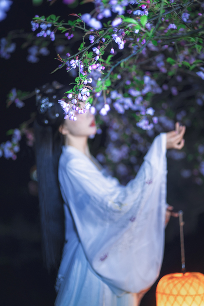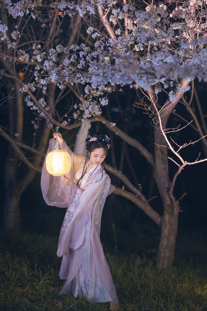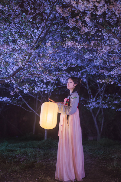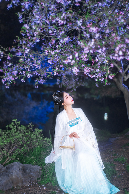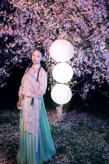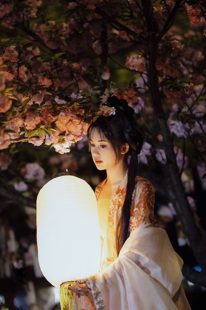 客片合集|夜景樱花粉樱+白樱花汉服古风少女写真