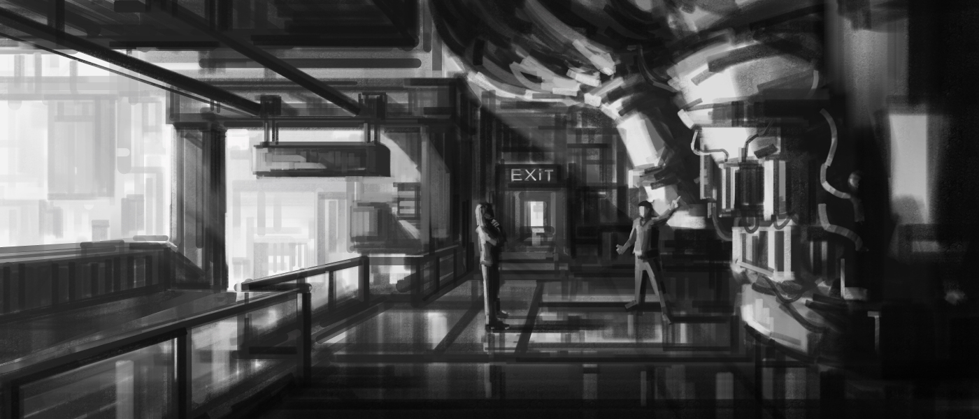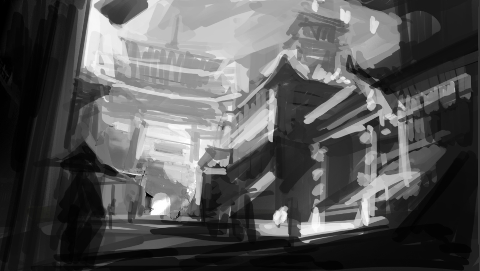 【构图练习】赛博朋克主题黑白场景