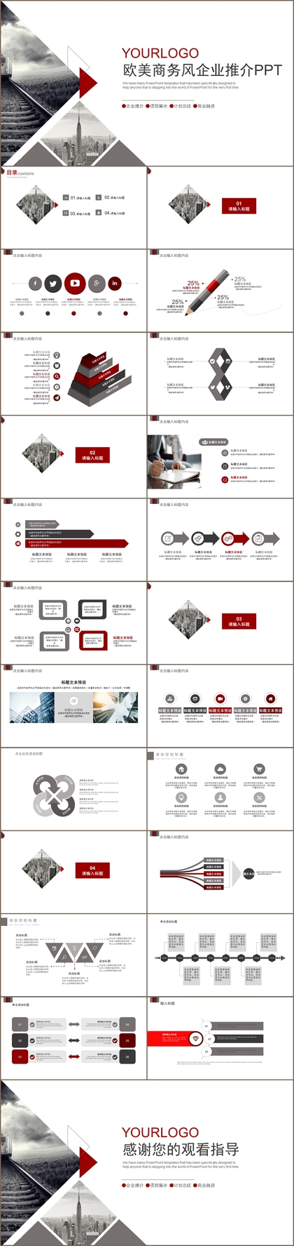 红色清晰公司文化形象简介产品推广宣传画册PPT模板