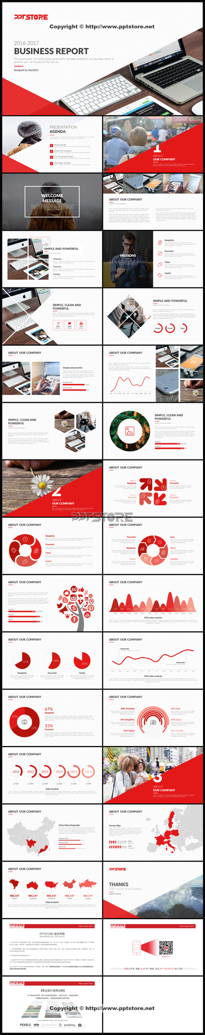 2016年简洁清新商务PPT模板(红+蓝+占位符)
