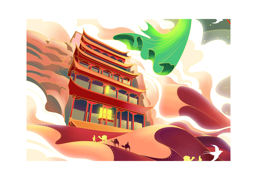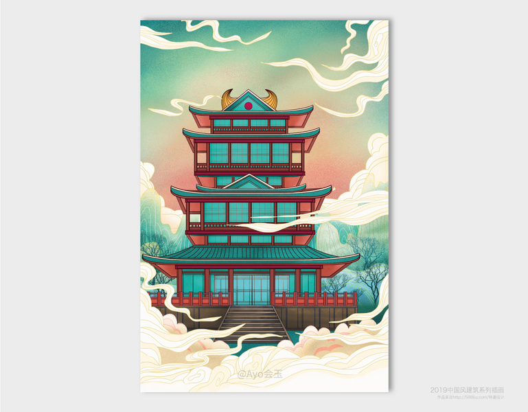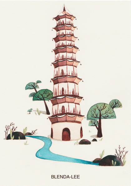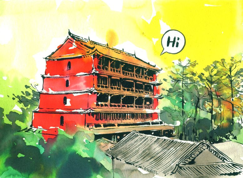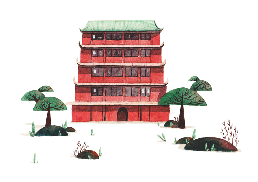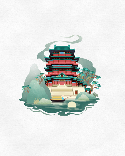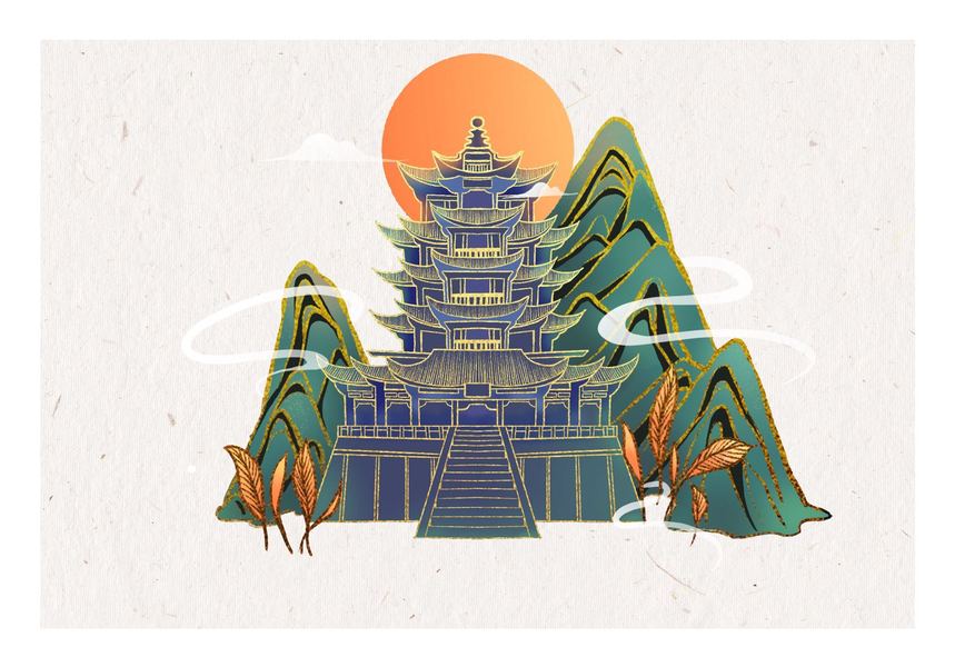 商业插画-宣传插画-手绘地标-餐饮-热干面