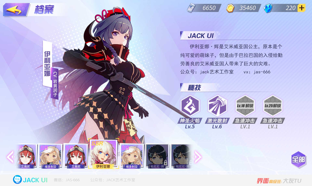【JACK游戏UI】二次元、欧美Q版、写实科技界面