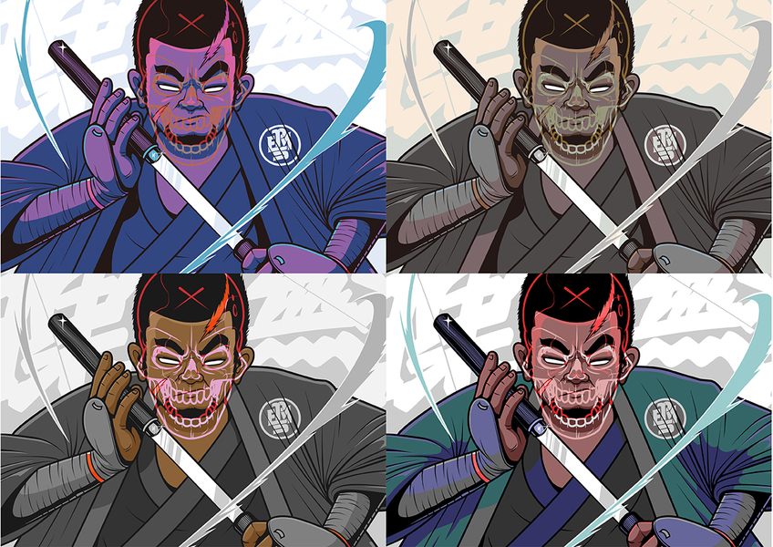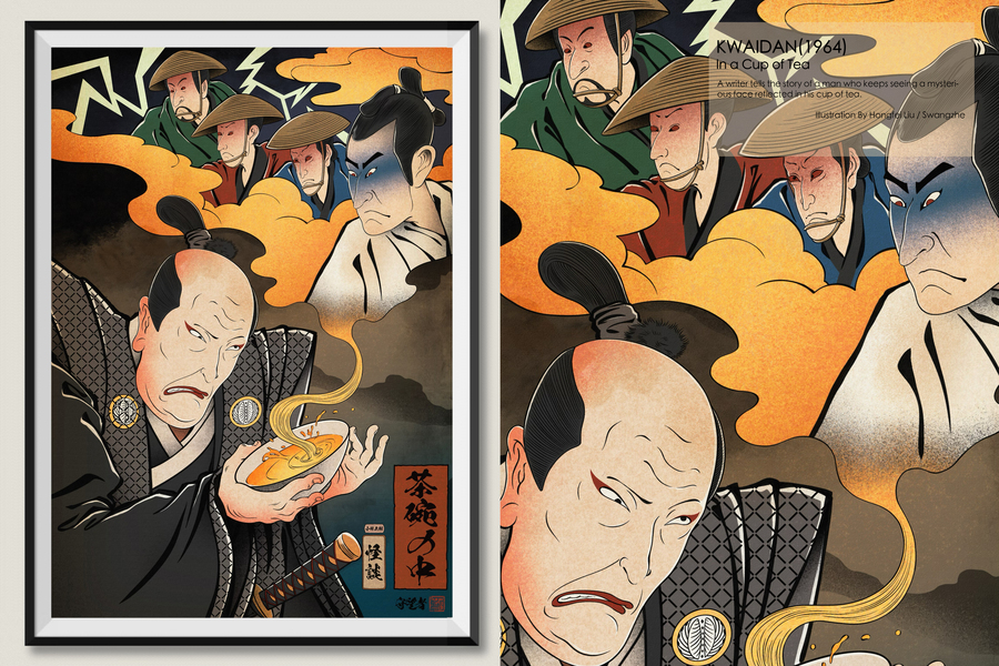 怪谈 四幅浮世绘风格插画