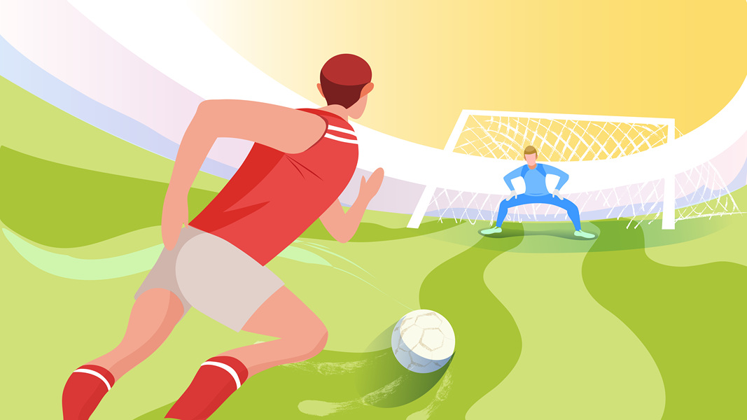 暖色矢量世界杯足球比赛激烈攻守绿茵插画