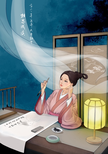 插画设计《愁心千叠》