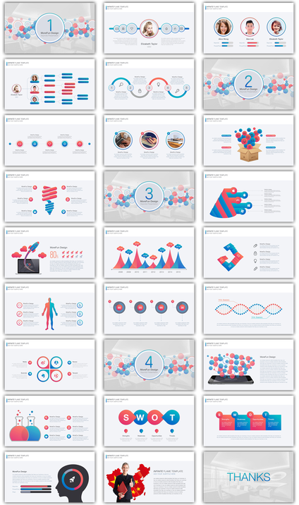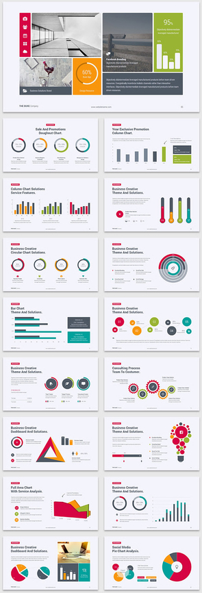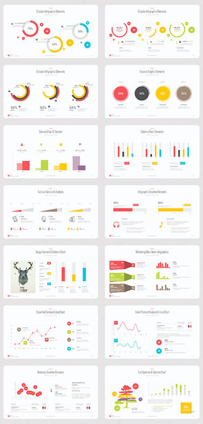 200多页扁平化简约数据分析统计PPT模板20种配色