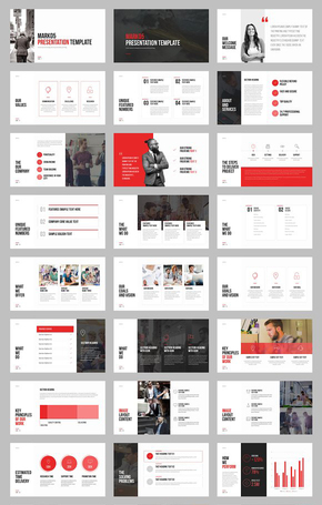 红色渐变炫彩ISO风格商务贸易企业通用动画PPT模板