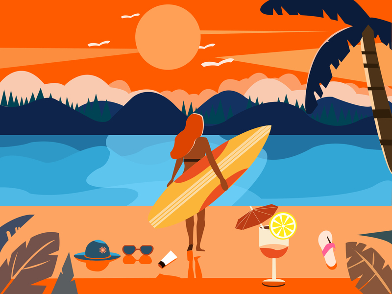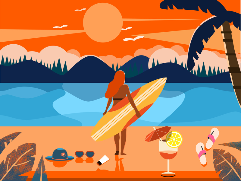 海滩小插画