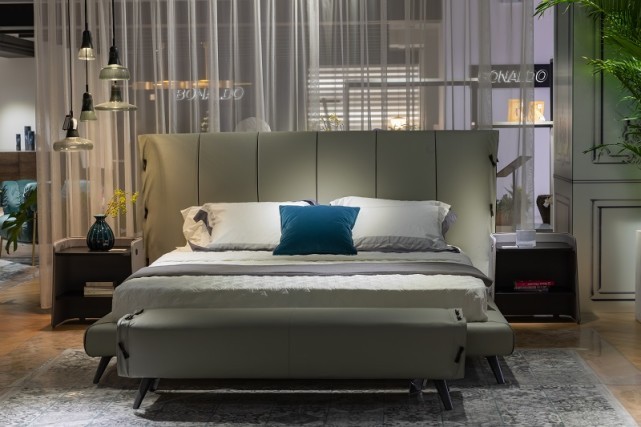 家具摄影,商业拍摄,现代床架场景布置拍摄图