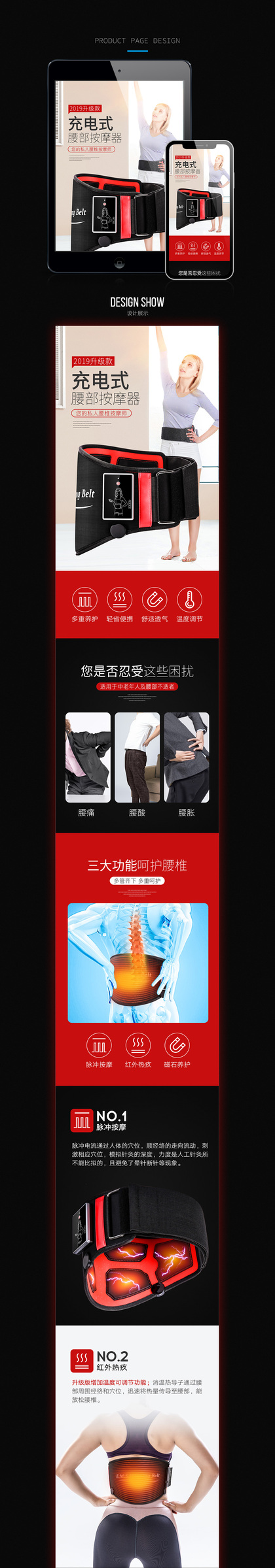 充电式腰部按摩器腰带