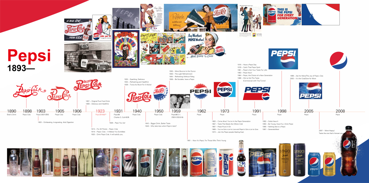 百事可乐(Pepsi-Cola)品牌包装宣传发展历程相关简表