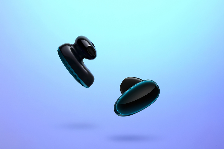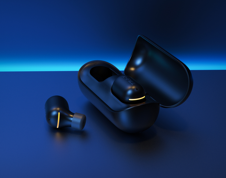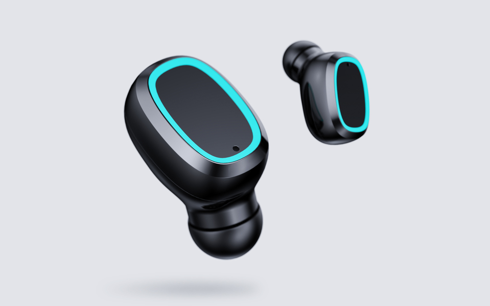 第一款:TWS蓝牙耳机渲染拍摄平面设计