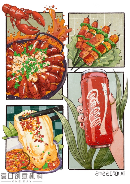 厦门沙坡尾艺术西区旧味餐车小吃 商稿2张 虾饼+香肠