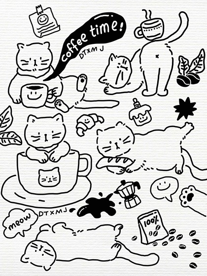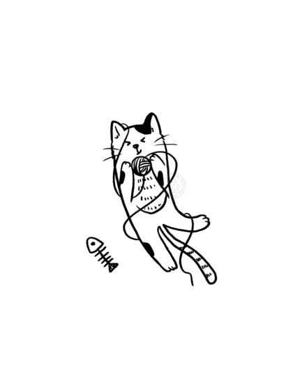 黑白手账素材-今天捣蛋了吗-简笔画猫咪
