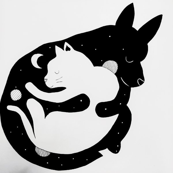 黑白手账素材-放鸭放轻松-简笔画小动物