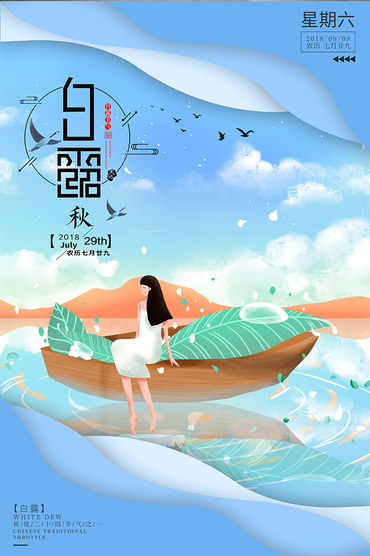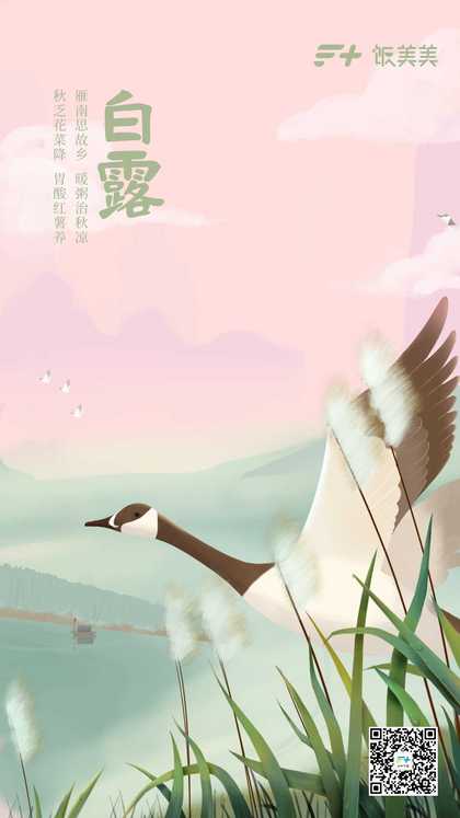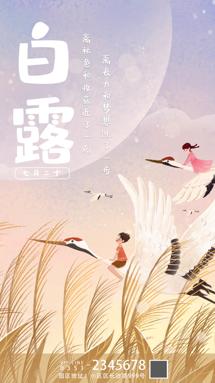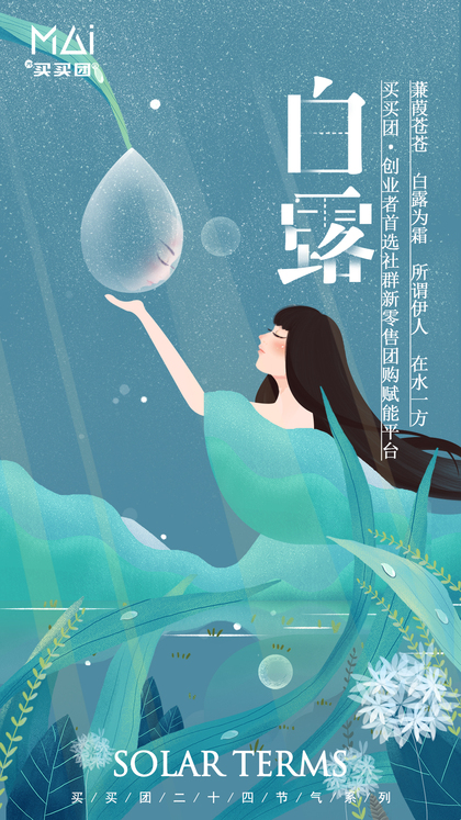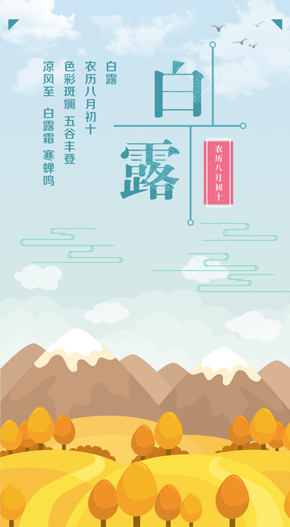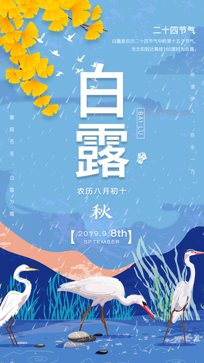 蒹葭苍苍,白露为霜。传统节气插画海报