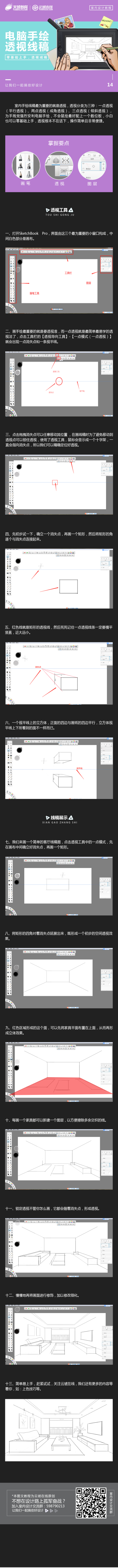 【室内教程】电脑手绘,透视线稿