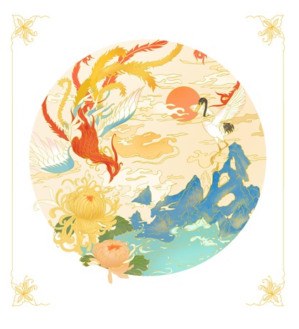 《极乐之乐》“共命鸟”国风印花刺绣素食包装汉服图案