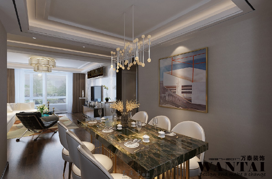 鲁能泰山七号125平现代轻奢装修效果图--半包4万