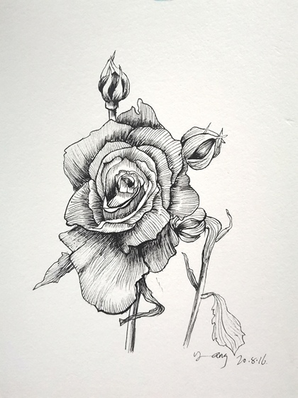 《凋零的花》—钢笔画