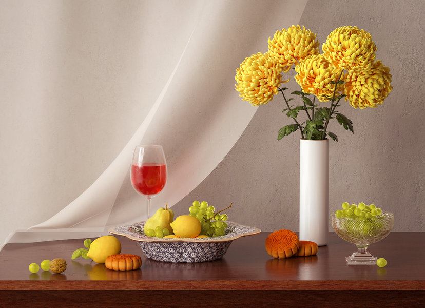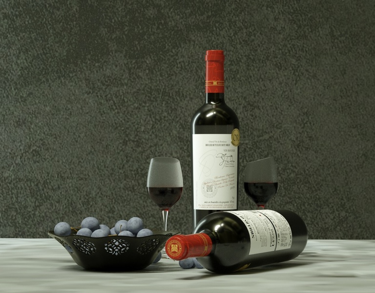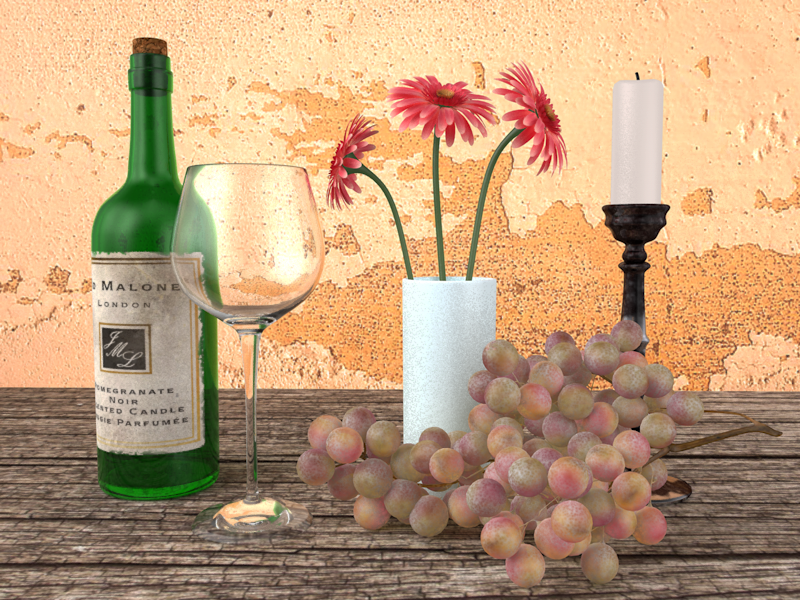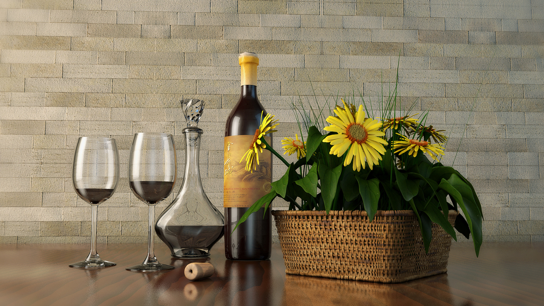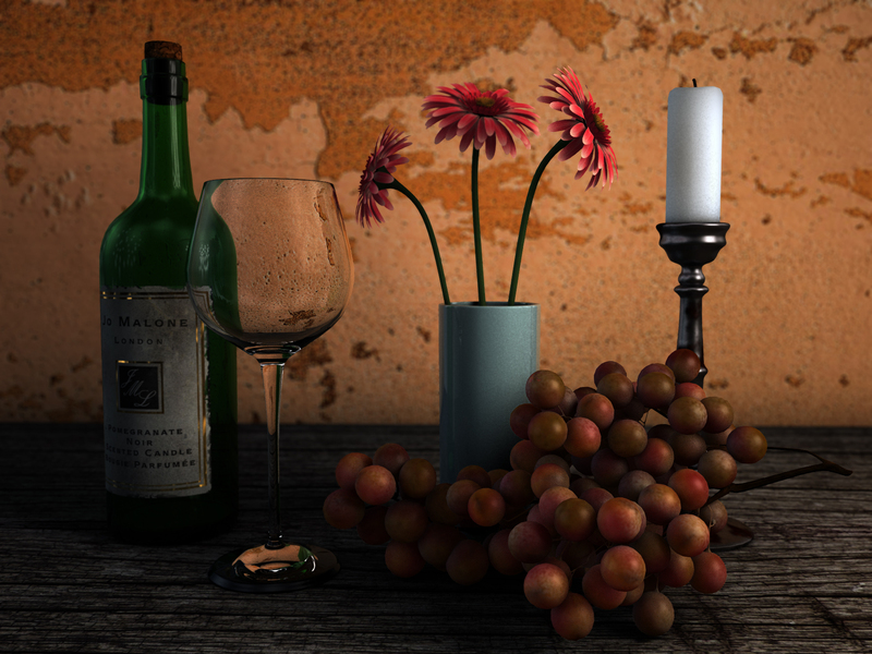 c4d原版渲染器葡萄美酒静物渲染练习
