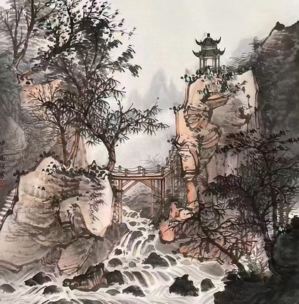 南城散人临铁桥道人水墨山水中国画,文人画研学
