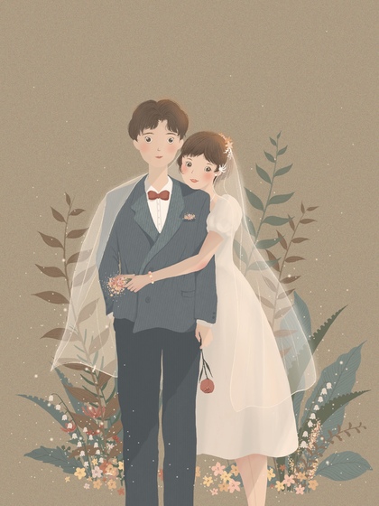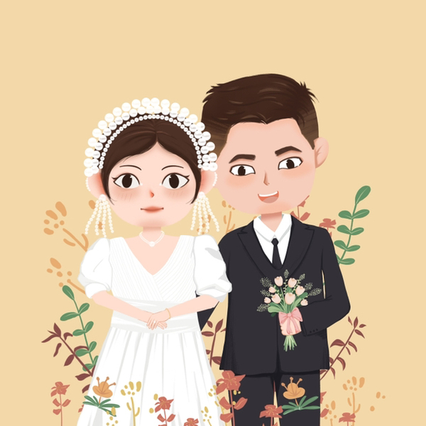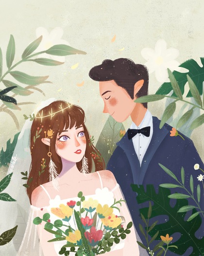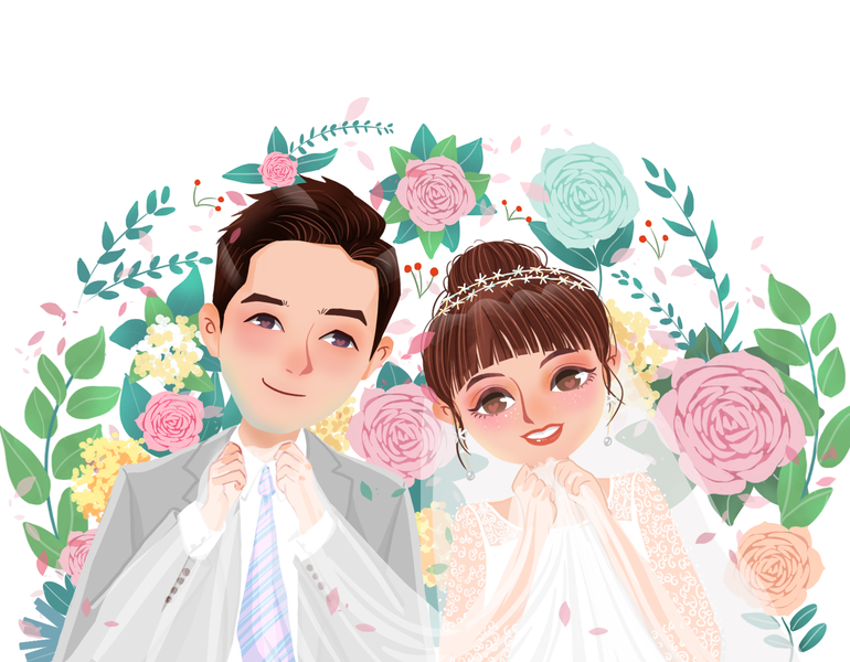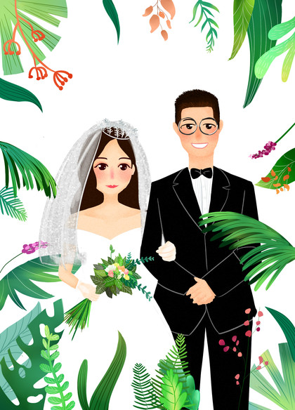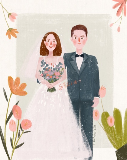 手绘水彩婚纱请柬新人肖像奥运五金王邹凯周捷婚礼画师