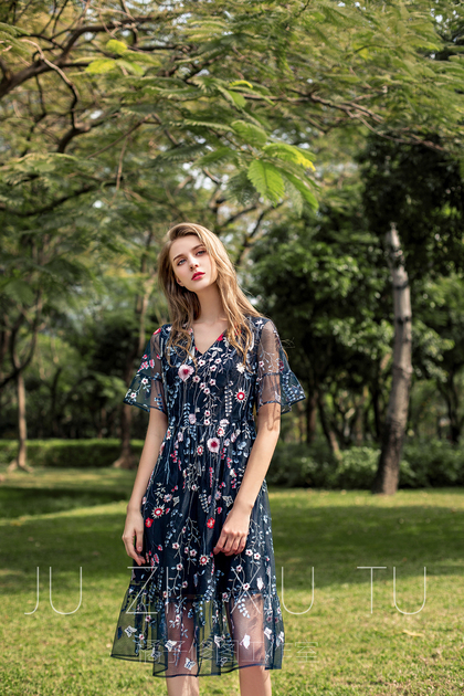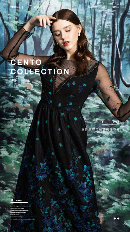 CENTO COLLECTION2018立体蝴蝶定位绣花连衣裙
