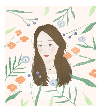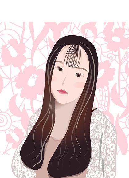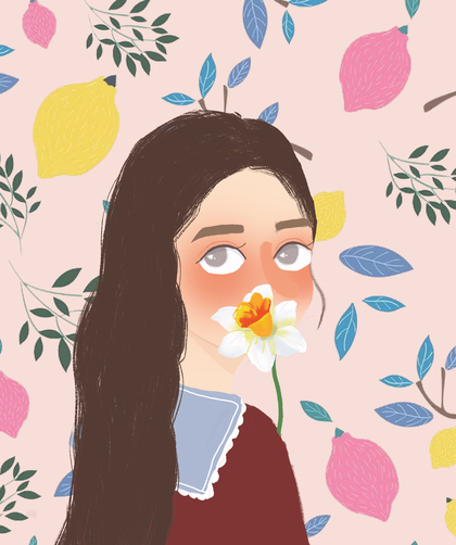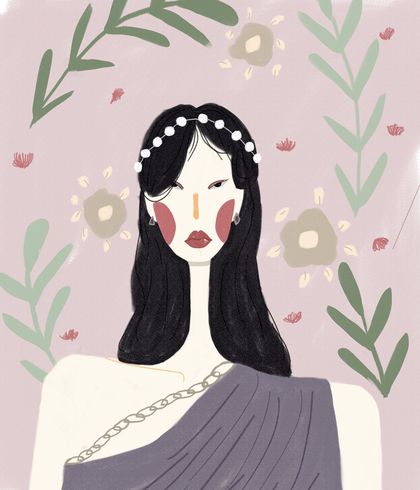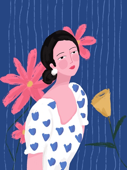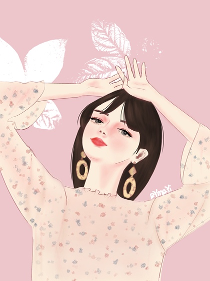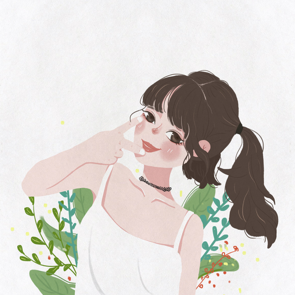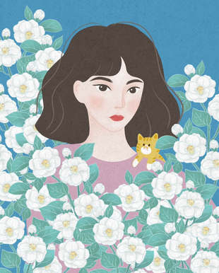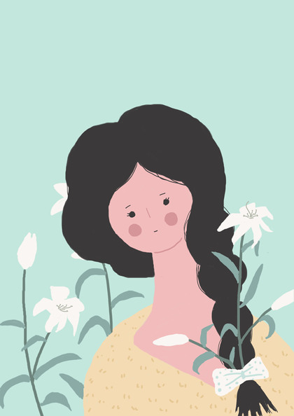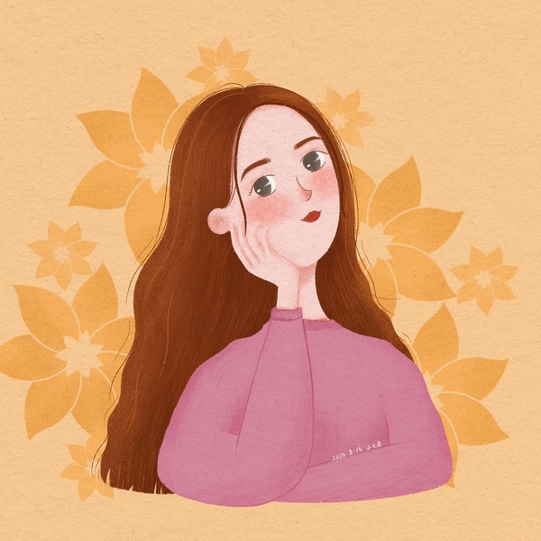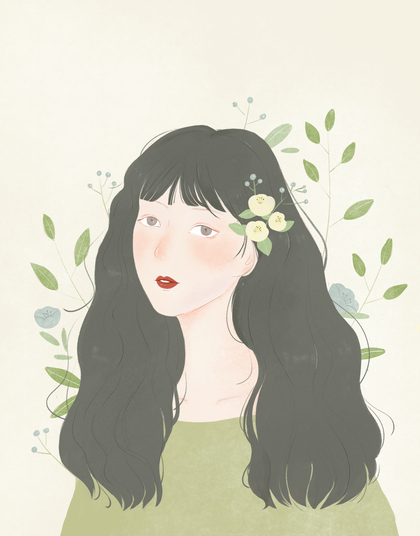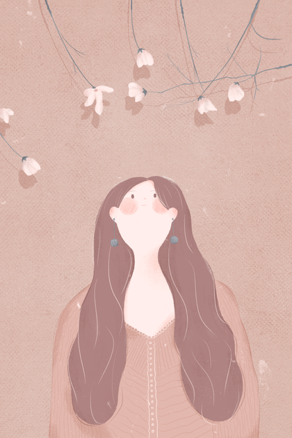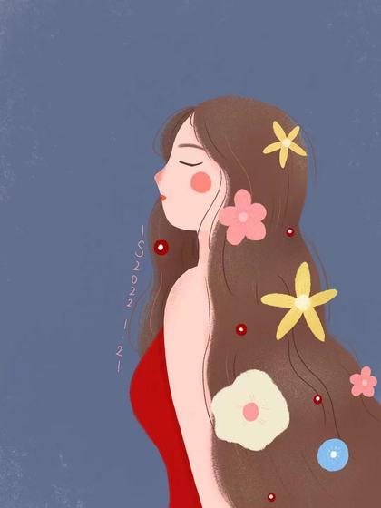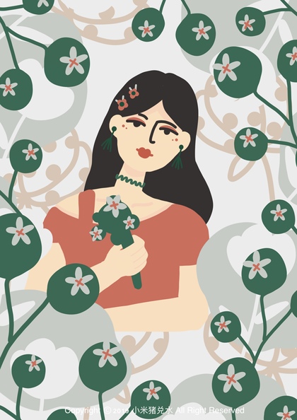 紫色调手绘女孩 植物花卉手绘 少女插画包装素材