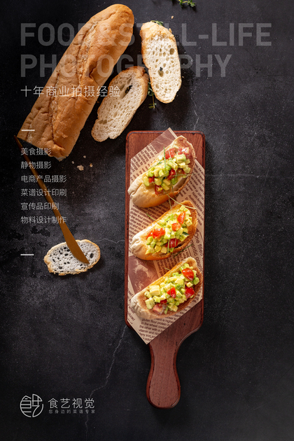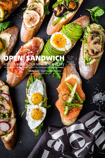 拍摄一组开放三明治